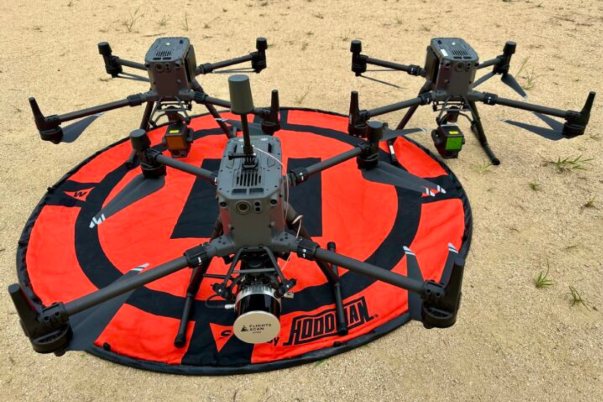 4人1チームで4つのチームを組み、Matrice300/350を4台使用して広範囲のデータ取得が可能です。